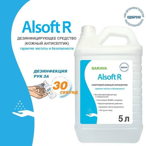 Alsoft R is a powerful, broad-spectrum hand and surface disinfectant providing long-lasting protection. Its unique formulation offers a 3-hour residual antimicrobial effect, effectively eliminating a wide range of microorganisms. This 5-liter bottle is perfect for high-traffic areas requiring frequent disinfection.
