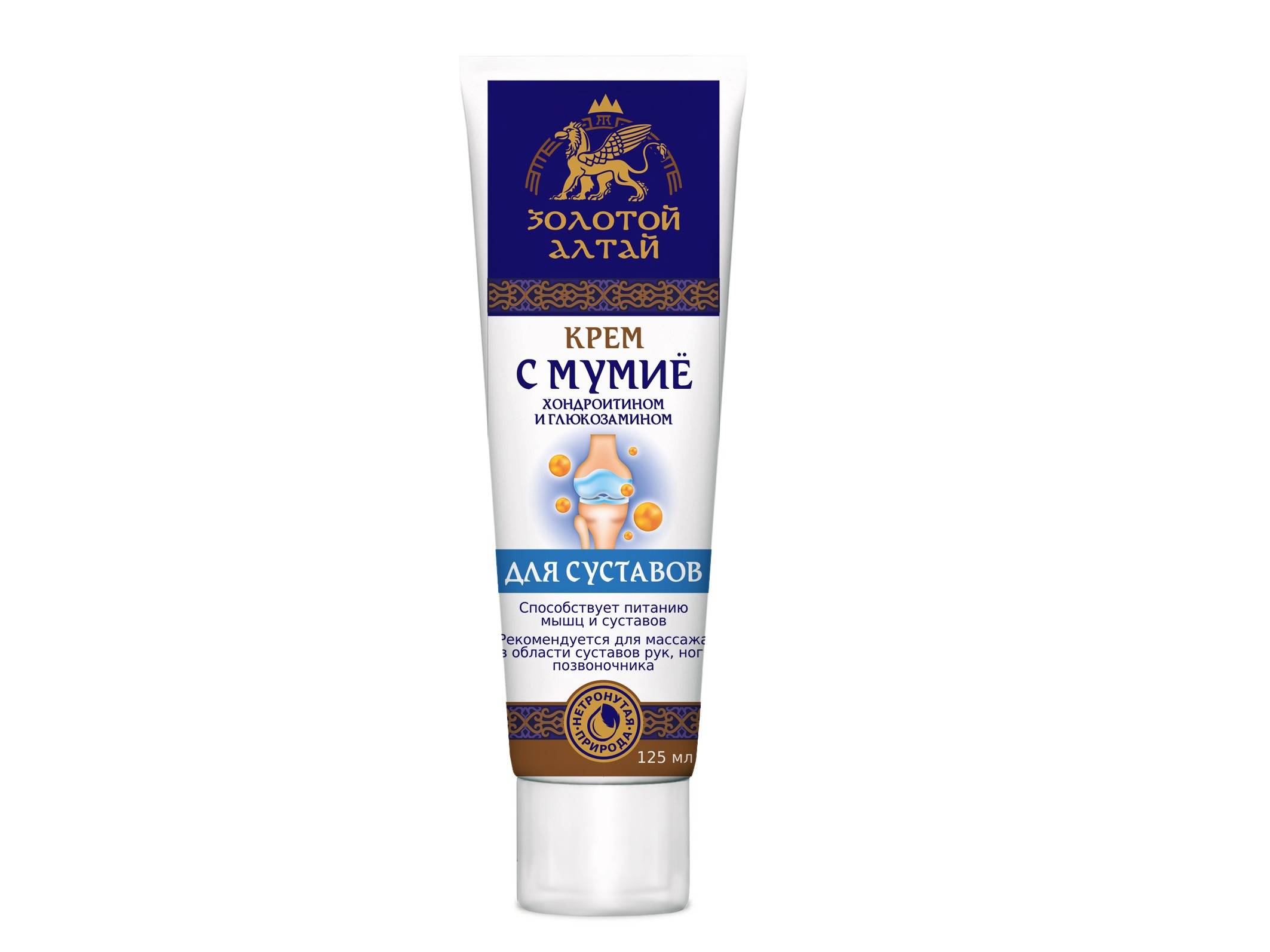 Ideal for massage, Altai Gold Joint Cream improves microcirculation, eases muscle tension, and reduces fatigue. Mumijo, meaning "body preserving" in Greek, accelerates skin repair and possesses remarkable healing properties. Chondroitin supports the restoration of cartilage structure after injury or joint disease, improving joint function and repairing ligaments and joint surfaces. Glucosamine, a crucial component of cartilage and synovial fluid, reduces inflammation, pain, and promotes healthy cartilage regeneration.