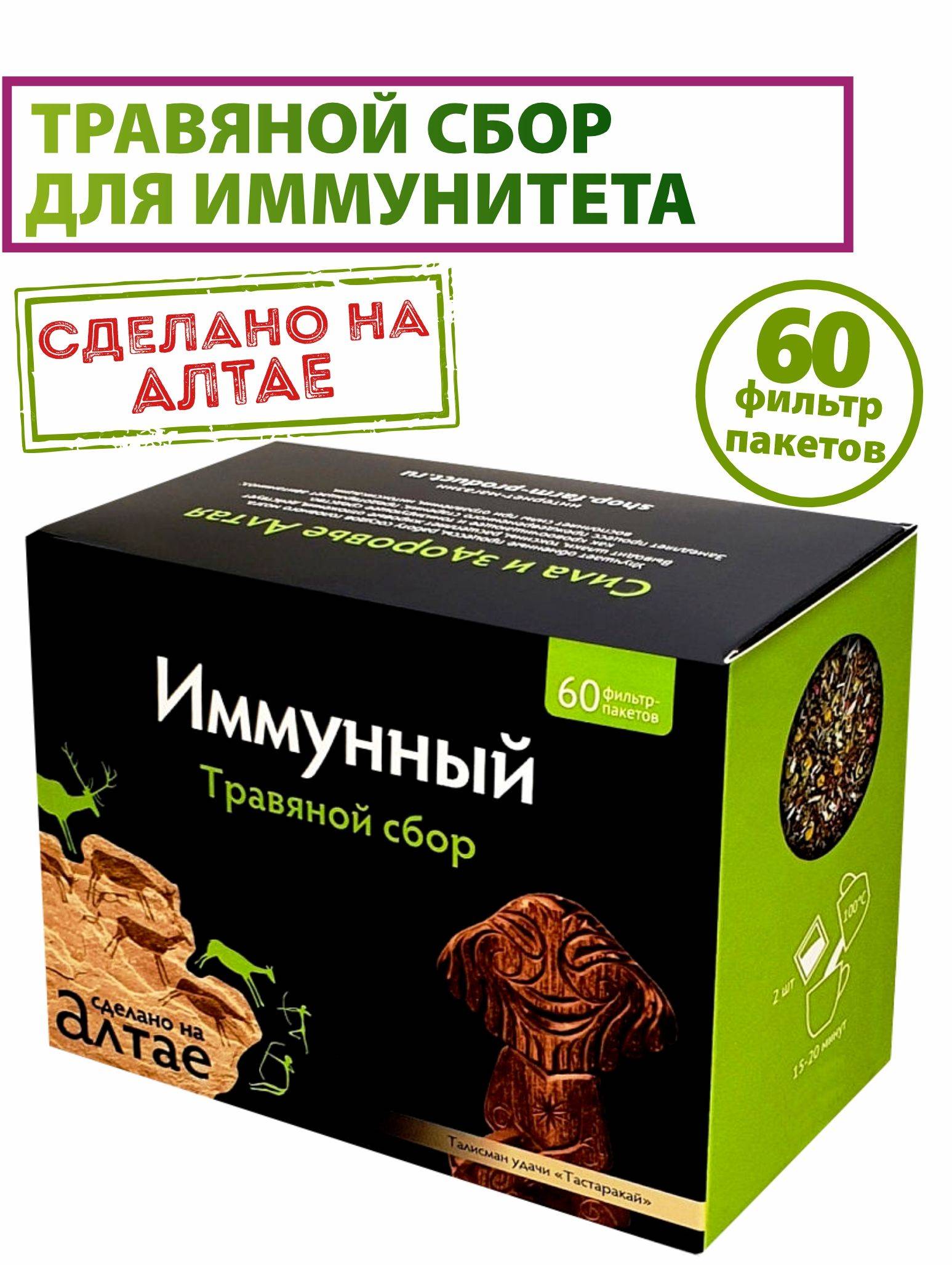 Altai Traditions Immune Herbal Blend improves metabolic processes and cerebral blood vessel function. It helps remove toxins and slags, breaks down fat deposits, and acts as a blood purifier and tonic. It slows premature aging, prevents vitamin deficiency, and restores strength after poisoning or intoxication. For wellness, steep 2g (1 tsp) of the blend in one cup of boiling water for at least 15 minutes, then strain. Adults should take half a cup twice daily with meals. Can also be brewed in a teapot using the same proportions.