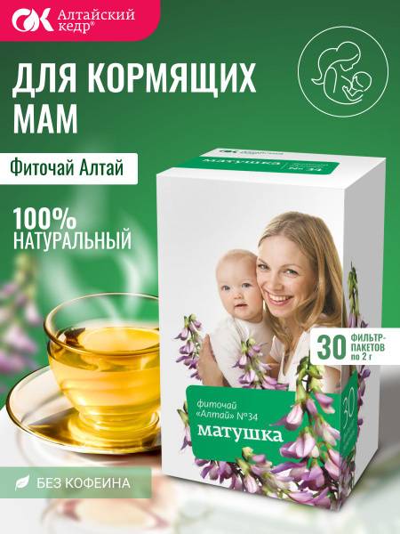 Altai Herbal Tea No. 34 "Matushka" offers a natural and effective way to support breastfeeding and the overall well-being of both mother and baby. Enjoy 30 convenient tea bags, each weighing 2.0g.