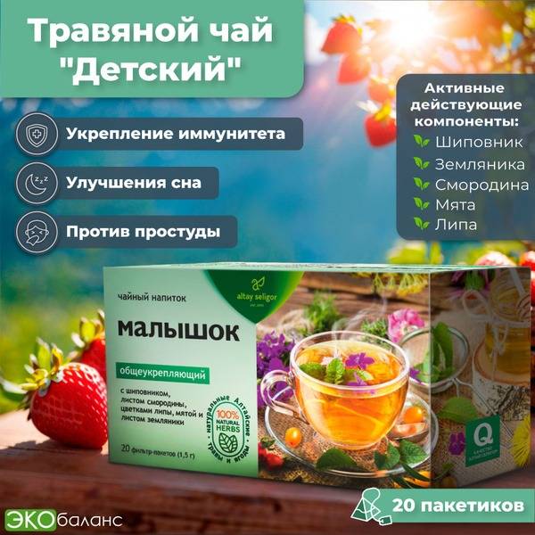 Keywords: Altai herbal tea, children's tea, kids immunity, immune support, cold and flu remedy, vitamin C, rosehip tea, hawthorn tea, linden flower tea, natural remedy, kids health, organic tea, herbal blend, 20 sachets, child health supplement, Altai mountains, natural reserves, herbal medicine, children's immune system, preventative health, healthy children, vitamin rich, mineral rich.