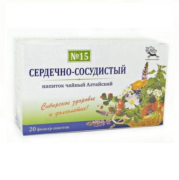 Description: Altai Herbal Tea No. 15 Cardiovascular Blend from U-Pharma supports cardiovascular health. This blend is traditionally used to help manage symptoms associated with cardiovascular conditions such as hypertension, ischemic heart disease, angina, heart failure, tachycardia, and arrhythmia. Not intended for use by pregnant or breastfeeding women, children under 14, or individuals with known allergies to the ingredients. Directions: Steep one tea bag in 200ml of boiling water for 15 minutes. Consume 100ml three to four times daily, 1-2 hours after meals. Use for 1-2 months. Consult your doctor before use, especially if you have pre-existing health conditions or are taking other medications.