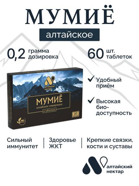 Pure, natural Altai Shilajit tablets offer a highly bioavailable source of fulvic and humic acids, acting as a potent antioxidant and adaptogen. Support your immune system, joint and ligament health, and overall well-being with this concentrated formula. Our unique processing method preserves the full spectrum of Shilajit's beneficial components. Each convenient tablet provides a precise dose (3 tablets = 0.6g, containing 37.2mg of humic acids – 74.4% of the recommended daily intake). A course of Shilajit helps normalize digestive function, neutralize free radicals, detoxify the body (removing heavy metals, radioactive elements, nitrates, phosphates, and other harmful substances), improve metabolism, and boost circulation. This natural antioxidant is also valued in cosmetics for enhancing skin, hair, and nail health. Shilajit's effectiveness is proven in treating musculoskeletal injuries and conditions by accelerating bone tissue regeneration, aiding recovery from injuries, reducing osteoporosis risk, and strengthening joints and ligaments.