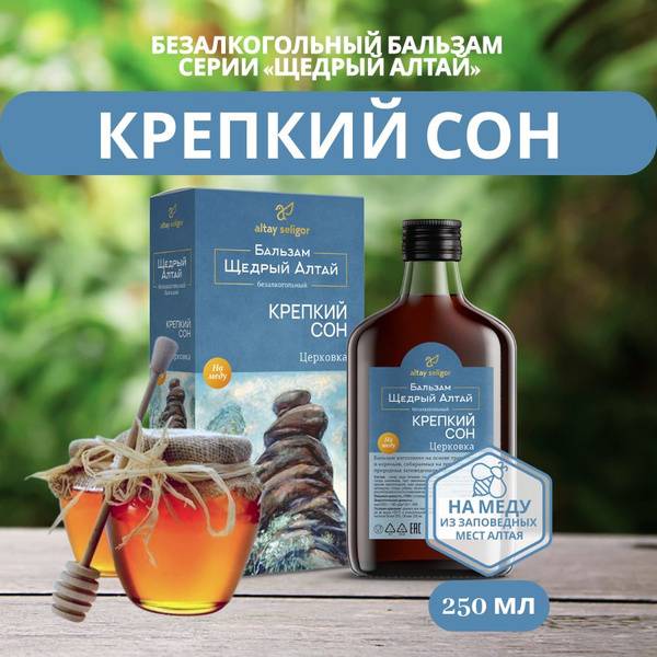 Altay Seligor Tserkovka Balm promotes relaxation and restful sleep. This natural balm helps reduce nervous tension, improve sleep quality, alleviate headaches, and enhance overall well-being. 250ml bottle.