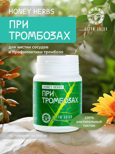 Altyn Solok, Honey Herbs, Thrombosis Support, Vascular Health, Blood Circulation, Blood Clots, Inflammation, Blood Vessel Elasticity, Cardiovascular Health, Herbal Supplement, Horse Chestnut, Hawthorn, Peppermint, Rosehip, Raspberry Leaves, Meadowsweet, Linden, Violet, Post-COVID Recovery, Thrombosis Prevention, Natural Supplement, Blood Flow, Healthy Heart.