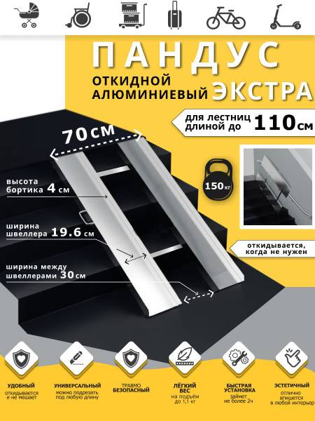 The Extra aluminum fold-down ramp is the lightest and strongest on the market, extending up to 3 meters. Featuring a robust 3mm thick profile, 40x196x40cm runners, and a standard 300mm runner spacing (external width 680mm, customizable). Choose from three powder-coat colors: black, gray, or yellow. The Extra ramp boasts a safe, non-slip surface, secure side rails, lightweight design, and aesthetically pleasing appearance. It's the innovative solution for easy wheelchair access, offering unbeatable value for its quality and features. Weighing almost half as much as comparable galvanized steel ramps, the Extra is effortlessly deployed and retracted. Custom lengths and widths accommodate various wheelchair bases. Installation is quick (under 3 hours), requiring no special measurements or on-site visits. Backed by over 5000 successful installations. Experience the difference with the Extra - lightweight, durable, and affordable.