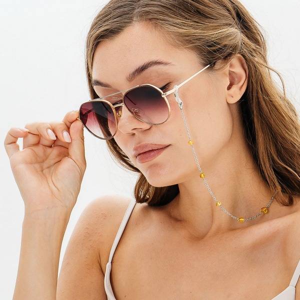 Experience the elegance and healing power of this handcrafted amber eyeglass chain. Crafted with hypoallergenic metal (jewelry alloy) and featuring genuine, luminous lemon-clear Baltic amber beads (5-6mm), this 70cm chain ensures a comfortable and secure fit. Universal, adjustable silicone loops with clips fit virtually any eyewear, easily attaching and detaching via sturdy carabiners for simple replacement if needed. Weighing just 6g, this lightweight accessory is both stylish and practical.