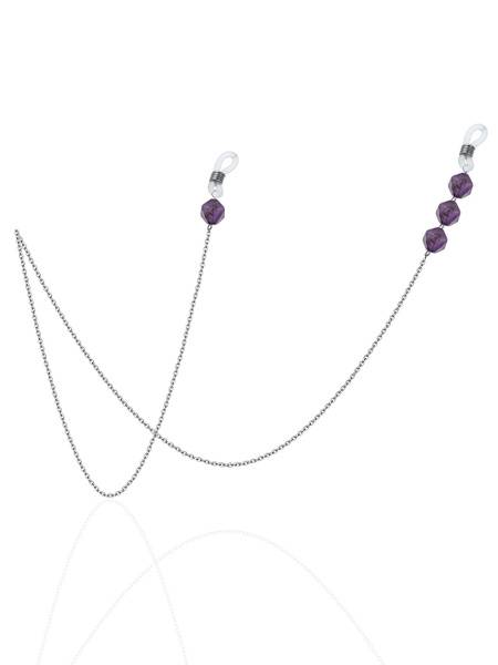 Description: Elevate your eyewear with this exquisite amethyst eyeglass chain. Crafted from high-quality rhodium-plated jewelry alloy, this 76cm chain (including elastic ends) offers a secure and stylish way to keep your glasses close at hand. The stunning amethyst gemstone boasts an approximate diameter of 6mm, adding a touch of luxury. Weighing just 4.8 grams, it provides comfortable all-day wear.