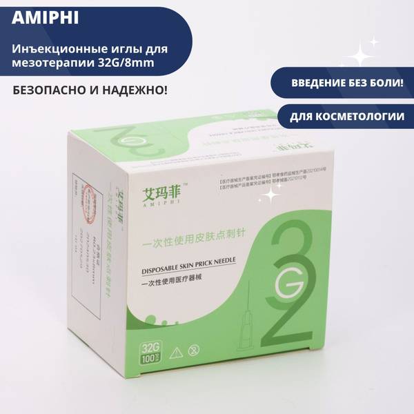 Experience effortless injections with AMIPHI 32G/8mm injection needles. These high-quality, triple-bevel needles are designed for atraumatic delivery in cosmetic procedures. 100 needles per pack. Made from non-toxic medical-grade steel for superior strength and thin-walled precision. Ideal for mesotherapy, these 32G 8mm needles are perfect for cosmetic injections.