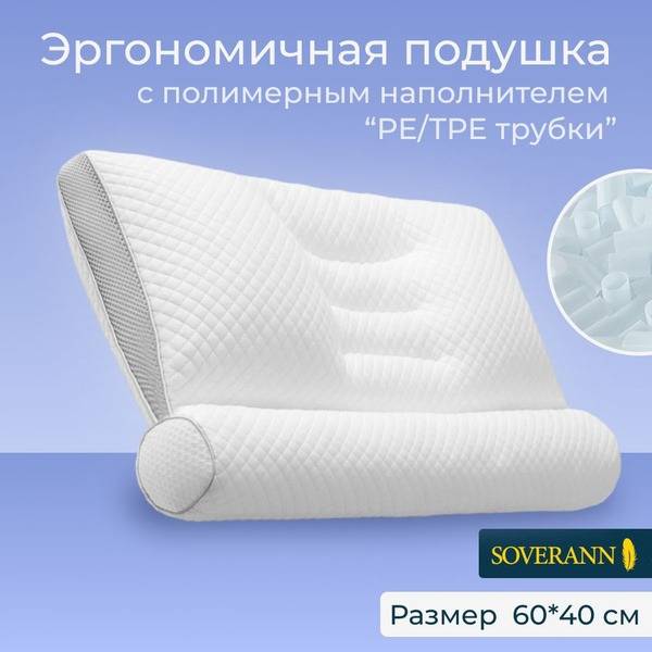 The SOVERANN 40x60cm ergonomic pillow is meticulously crafted to provide optimal support and alleviate neck pain. Its innovative design combines a cylindrical section and a rectangular support area, offering a personalized sleep experience.