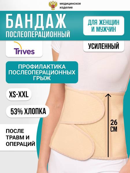 This premium anatomical reinforced post-operative abdominal binder from Trives is expertly designed to support recovery after abdominal surgery, procedures on the abdominal wall, and kidney area operations. It's an essential aid for rehabilitating blunt and acute trauma to the abdominal wall and lumbar regions. Ideal for addressing abdominal wall weakness and diastasis recti, this binder also serves as a preventative measure against muscle strain during post-operative physical activity and helps prevent the development of post-operative hernias.