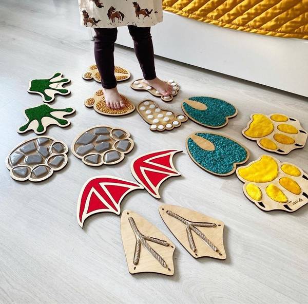 Description: Engage your child's senses with our Animal Tracks Sensory Path! This set includes 8 pairs (16 total) of uniquely textured and shaped animal footprints. Develop fine motor skills, cognitive abilities, and tactile awareness through various activities: create custom pathways, match pairs, explore different textures, identify animals by their tracks (each footprint features an engraved animal on the reverse), and more! Featuring anti-slip dots on each footprint, this sensory path is safe for use on carpets and hard floors. Each footprint measures 20cm in height; width varies. Perfect for sensory play, learning, and fun!