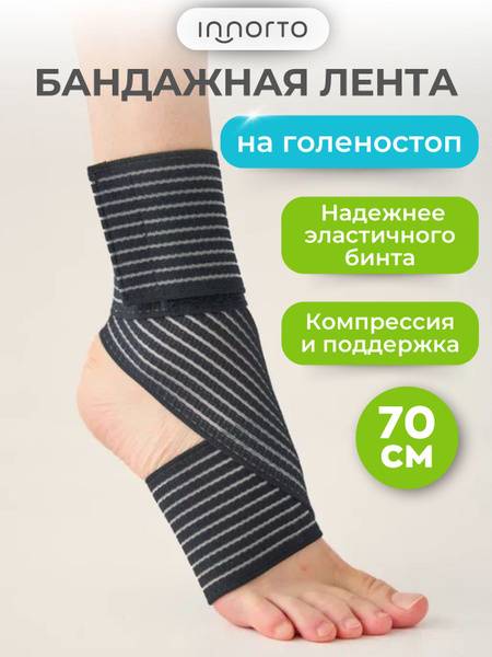 Experience superior ankle support with the INNORTO 52097 elastic ankle bandage. Ideal for athletes and those recovering from sprains, strains, or other ankle injuries, this adjustable wrap provides compression and stability to the ankle joint. The flexible design allows for customized compression levels, ensuring a comfortable and secure fit without restricting movement. Its durable, yet comfortable, elastic material is gentle on the skin, and the hook-and-loop closure prevents slippage and bunching. Easy to clean and maintain, this versatile ankle support is suitable for adults and children. Provides excellent support for ankle ligaments, improving joint stability during physical activity and recovery. Features a 70cm length and 7.7cm width. Black.