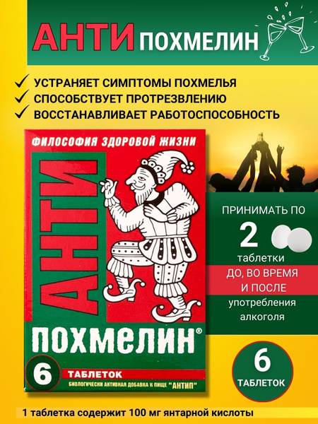 For best results, take 1-4 Antip #6 (500mg) tablets with meals. For mild alcohol consumption, 1-2 tablets may suffice. For heavier drinking, take up to 4 tablets. It's recommended to take the tablets before or during alcohol consumption, but they can also be taken after. Continue for 4-5 days. Remember, Antipohmelin is not a cure for alcohol poisoning.