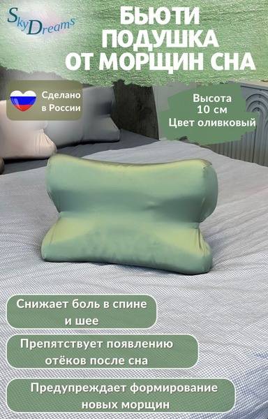 Title: SkyDreams Anti-Wrinkle Orthopedic Beauty Pillow - 10cm, Olive Green