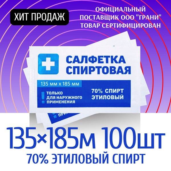 Description: High-quality, individually wrapped antiseptic alcohol wipes (135x185mm) from Grani. Our 100-count pack provides effective and convenient disinfection for your home, car, and on-the-go needs. 70% ethyl alcohol solution ensures superior germ killing against bacteria, viruses, and fungi. Perfect for skin sterilization, surface disinfection, and more. Medical-grade quality, certified and used in Russian healthcare facilities. Order now for fast, reliable disinfection.