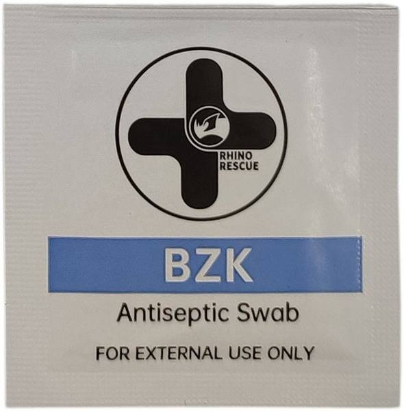 Description: Rhino Rescue antiseptic wipes provide convenient, single-use cleansing. Each pack contains five individually wrapped wipes, each saturated with 0.1% benzalkonium chloride solution. Simply tear open the package, unfold the wipe, and use to cleanse the desired area of skin. Dispose of the wipe properly after single use. Ideal for first-aid kits, home use, travel, and military applications.