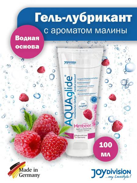 intimate lubricant, water-based lubricant, raspberry lubricant, sensitive skin lubricant, oral lubricant, sex lubricant, JoyDivision lubricant, lubricant gel, long-lasting lubrication, pH balanced lubricant, condom compatible lubricant, sex toy compatible lubricant, AQUAglide, Germany, 100ml, pleasure, intimacy, sensual, raspberry flavor, raspberry scent.