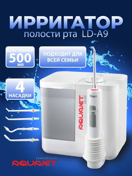 Description: The new Aquajet LD-A9 oral irrigator is more powerful, convenient, and modern than ever. Designed for periodontal disease therapy (including gingivitis and periodontitis) and gum massage, it effectively cleans hard-to-reach areas between teeth that traditional brushing and flossing miss. The LD-A9 also helps maintain and extend the lifespan of dental prosthetics, including crowns, implants, and orthodontic appliances. Featuring a 500ml removable water reservoir and a dishwasher-safe nozzle storage compartment, the LD-A9 offers effortless pressure adjustment via electronic controls. The LED indicator light reflects the selected intensity setting. The comprehensive kit includes 3 nozzle types: 2 standard LD-SA01 nozzles, 1 orthodontic brush nozzle (LD-SA-05) for braces, and 1 soft-spray nozzle (LD-SA02) for sensitive gums. Its wall-mountable design (with compatible mounting holes as the LD-A8) saves space and features cord wrap recesses. A must-have for daily oral hygiene, the Aquajet LD-A9 stationary oral irrigator is a perfect solution for the whole family and makes a fantastic gift.