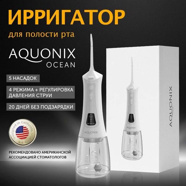 AQUONIX Portable Oral Irrigator: 300ml, 5 Nozzles, for Braces, Crowns, Implants