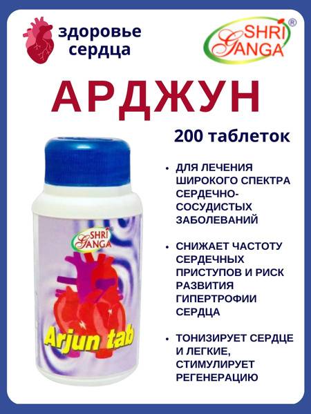 Arjun (Arjuna) is a 200-tablet Ayurvedic herbal supplement formulated to support cardiovascular health. Derived from the Terminalia arjuna tree bark, it's a rich source of arjunolic acid, ellagic acid, sitosterol, vitamins C and E, minerals (calcium, magnesium, zinc, copper), phenolic compounds, flavonoids, and tannins. These potent natural components work synergistically to: