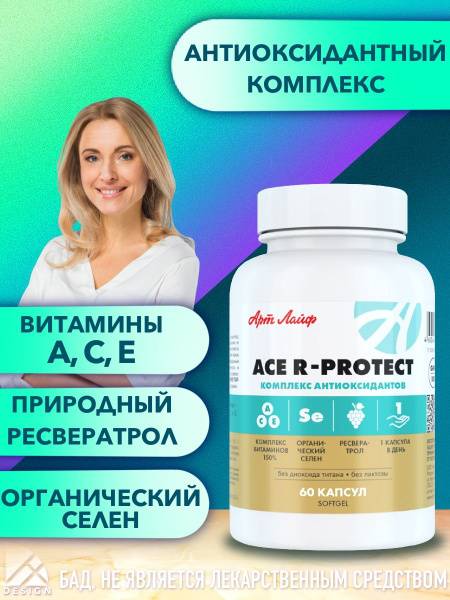 Keywords: ArtLife, ACE R-Protect, antioxidant, vitamin A, vitamin C, vitamin E, resveratrol, propioselen, selenium, beta-carotene, immune support, anti-aging, cellular health, skin health, cardiovascular health, fertility support, geroprotective, dietary supplement, capsules.