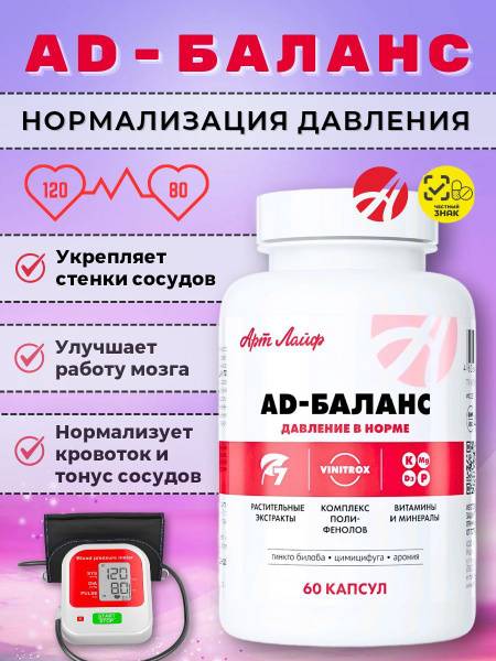 Description: ArtLife AD-Balance is a highly effective, clinically proven supplement formulated to stabilize blood pressure and improve circulation. Its unique blend of polyphenols (including VINITROX) and other active components work synergistically to address multiple aspects of hypertension and circulatory dysfunction. This comprehensive formula helps lower blood pressure, reduce vascular tone and spasm, improve blood flow to the heart and brain, and decrease the risk of blood clots and embolism. AD-Balance also supports healthy cholesterol levels, promotes healthy lipid metabolism, offers antioxidant protection, and helps manage stress. Its gentle diuretic action helps remove excess fluid. Each capsule weighs 0.66g. A natural approach to better cardiovascular health and well-being.