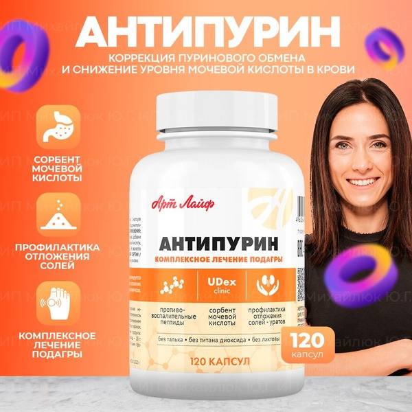 ArtLife Antipurin (120 capsules) offers comprehensive support for managing hyperuricemia and gout. This unique blend of natural ingredients effectively corrects purine metabolism, lowers blood uric acid levels, and prevents salt deposits in organs and tissues.