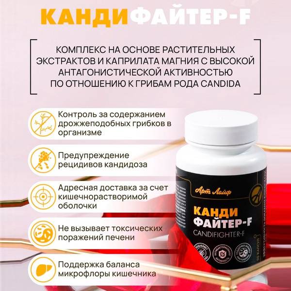 For optimal results, consider combining CandiFighter F with ArtLife sorbents (e.g., ToxFighter Lux, Phytosorbavit, Sorbiogel, Sorbiotic) and probiotics (e.g., Probinorm, Panbiolact).