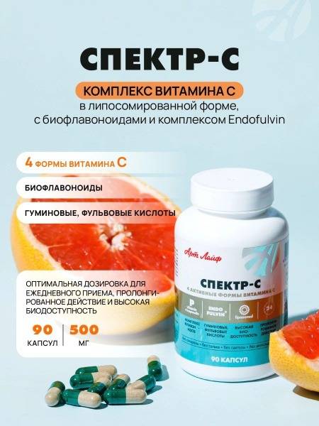 Keywords: liposomal vitamin c, vitamin c supplement, immune support, collagen synthesis, antioxidant, bioflavonoids, humic acid, fulvic acid, acerola extract, Endofulvin, ArtLife, Spektr-C, skin health, connective tissue, anti-aging, detoxification, healthy aging, immune booster, bioavailable vitamin c, sustained release vitamin c.