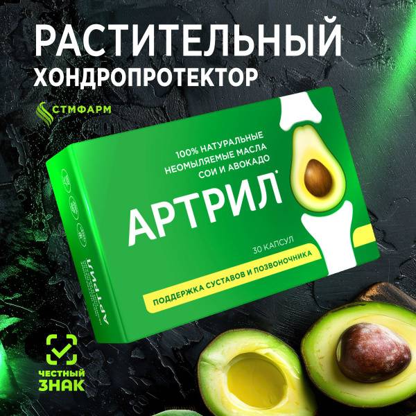 Artril is a highly effective dietary supplement for joint, bone, and cartilage health, formulated with unsaponifiable avocado and soybean oils. This modern, natural chondroprotector for joints and ligaments helps improve joint condition, maintaining mobility and flexibility. This active joint complex: