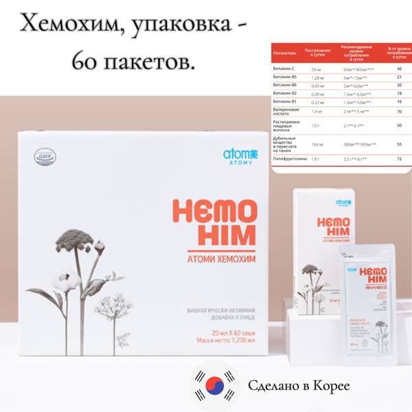 Description: Atomy HemoHIM is a 30-day supply of a powerful, patented Korean herbal blend in 6 boxes of 10 sachets (20ml each). This functional food supports immune function, blood cell production, and combats oxidative stress. Clinically shown to improve anti-tumor activity and immune response, HemoHIM helps to strengthen and regulate the immune system, supporting the body's natural ability to create new blood cells and hemoglobin. While not a cure, it's used to help manage symptoms associated with conditions such as diabetes, anemia, hypertension, stress, constipation, and autoimmune disorders like arthritis, arthrosis, and psoriasis. Ideal for: Seniors seeking increased vitality and energy; overworked professionals; students combating mental fatigue; individuals under significant stress; and those spending extended periods driving.