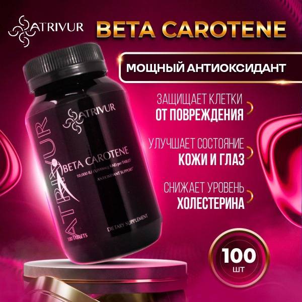Atrivur Beta-Carotene is a comprehensive dietary supplement formulated to support overall health and well-being. Packed with powerful antioxidants, it combats free radical damage, protecting your skin from premature aging and sun damage. Its anti-inflammatory properties contribute to faster wound healing.