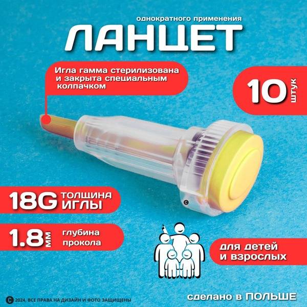 The Prolance High Flow automatic lancet with a yellow cap features a sharp 18G needle and a 1.8mm puncture depth, designed for painless capillary blood collection. Its longer needle is engineered for medium to high blood flow, ensuring optimal sample retrieval for a wide range of common blood tests.