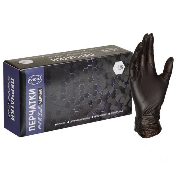 Aviora black vinyl disposable gloves offer a superior alternative to latex, minimizing the risk of allergic reactions. These powder-free, non-sterile examination gloves are made from high-quality polyvinyl chloride (PVC), providing excellent durability and tactile sensitivity. Their smooth, non-anatomical (flat) design ensures comfortable wear even during extended use, reducing hand fatigue. Ideal for a variety of applications, including household chores, hairdressing, cosmetic procedures, and food handling. Each box contains 50 large (size 8-9) gloves, measuring 240mm in length. Store in a cool, dry, and dark place. Contraindicated for individuals with PVC sensitivities.