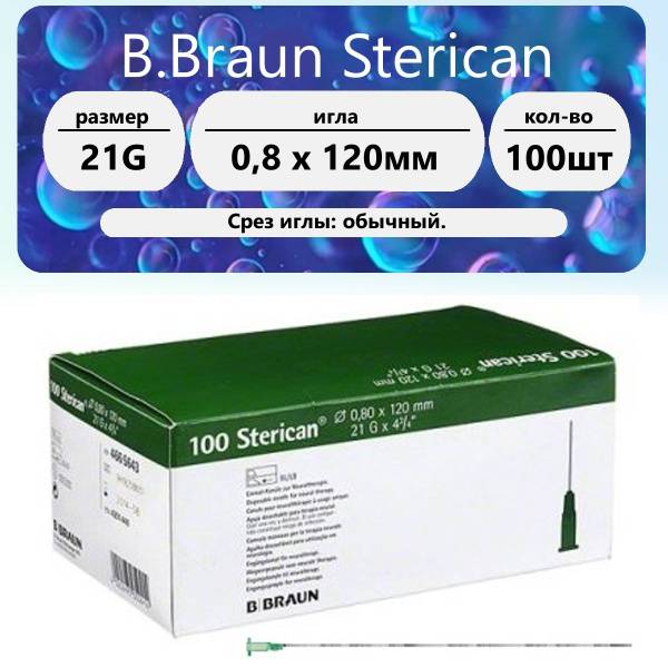 B. Braun Sterican 21G (0.8 x 120mm) single-use sterile injection needles provide superior performance and reliability for various medical applications. These needles are manufactured from high-grade, chromium-nickel stainless steel for exceptional durability and smoothness. The silicone coating minimizes friction and pain during injections.