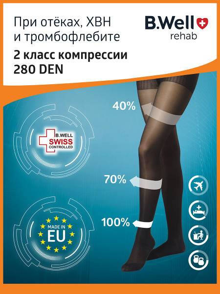 Experience superior comfort and support with B.Well rehab JW-321 compression stockings. These women's 20-30 mmHg (Compression Class 2) stockings, Swiss-engineered and ISO-certified, provide effective relief from varicose veins, edema, and leg fatigue. Made with Oeko-Tex certified materials for skin safety, they feature a unique 3D knit for breathability and moisture-wicking. The graduated compression improves circulation, reduces swelling, and promotes healthy legs. The seamless toe and anatomically shaped design ensure a comfortable, invisible fit under clothing. Enjoy all-day comfort and a sleek, stylish appearance. These stockings are ideal for prolonged wear, offering a gentle massage effect on the foot and improved blood flow. A reinforced gusset enhances durability and hygiene. The high-quality, Class A yarns guarantee 6 months of consistent compression performance. Perfect for women of all shapes and sizes, B.Well compression stockings offer superior comfort and support – experience the difference today.
