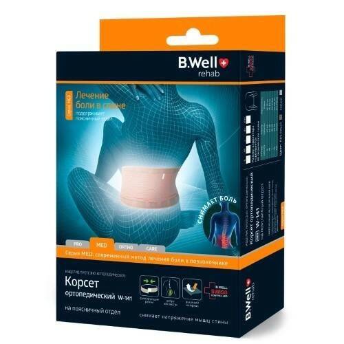 Experience Swiss-engineered back pain relief with the B.Well W-141 orthopedic lumbar support corset. This medical-grade corset provides gentle yet effective support for your lower back, reducing pain and strain. Featuring a secure, silicone-coated design and breathable, skin-toned fabric, it offers comfortable all-day wear. The adjustable straps and discreet closure protect your clothing and muscles from discomfort. Find reliable back support and regain your mobility with the B.Well W-141.