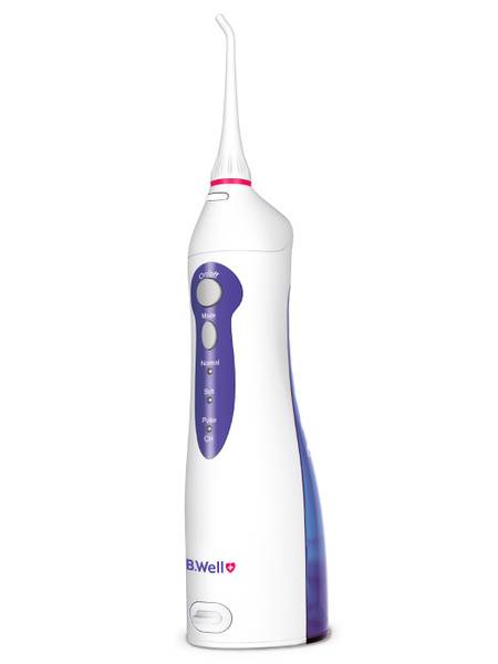 The B.Well WI-911 water flosser delivers effective and gentle interdental cleaning, removing plaque and tartar buildup. Prevent gum disease and maintain healthy teeth and gums. Perfect for braces, implants, and dentures. Features three modes, a long-lasting battery, and 360° rotating nozzle. Optional orthodontic and tongue cleaning attachments available.