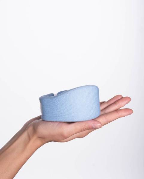 The KOMF-ORT K-80-07 asymmetrical neck support bandage offers gentle fixation and stabilization of the infant's cervical spine, relieving stress on ligaments and muscles. This orthopedic collar provides a micro-massage and warming effect.
