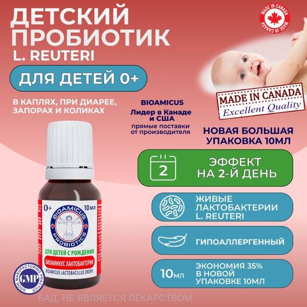 Title: Bioamicus Lactobacillus Reuteri Probiotics for Infants 0+ – Colic Relief from Canada (10ml)