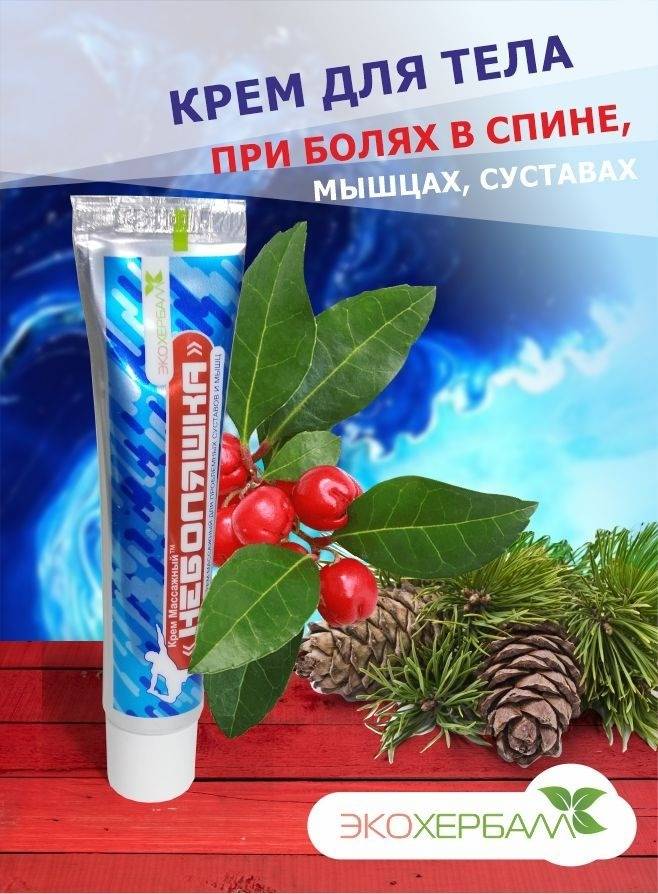 NeboLyashka massage cream provides soothing relief from back pain, muscle aches, and joint discomfort. This cooling and relaxing cream is formulated with natural ingredients including wintergreen oil, menthol, pine tar oil, and eucalyptus oil to effectively target pain and inflammation. Its powerful blend penetrates deeply to alleviate pain associated with arthritis, strains, sprains, and post-workout muscle soreness. Experience the comforting warmth and cooling sensation that helps relax tense muscles and reduce stiffness. NeboLyashka is your natural solution for fast-acting, long-lasting pain relief in your back, joints, muscles, ligaments, knees, elbows, and spine. Experience the NeboLyashka difference.
