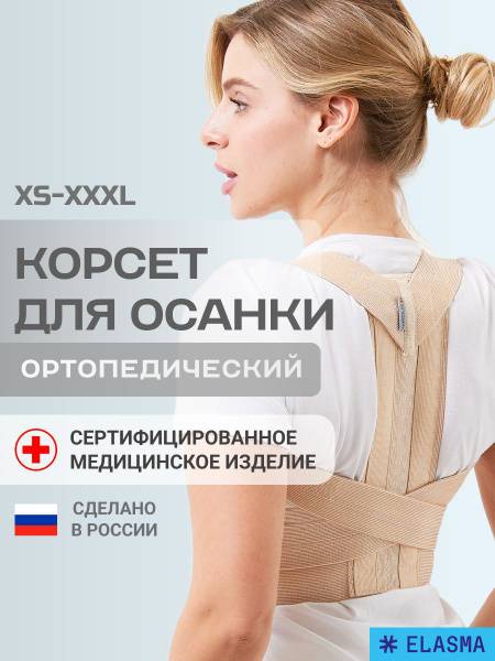 Posture corrector, back support, orthopedic back brace, spine support, posture brace, back pain relief, spinal alignment, osteochondrosis, thoracic spine support, ELASMA, posture correction, back corrector, upper back support, adjustable back brace, comfortable back brace, elastic back brace.