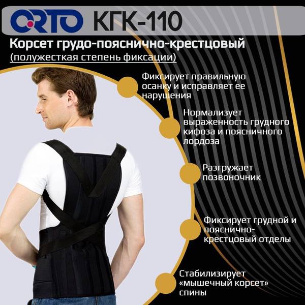 The ORTO KGK-110 black orthopedic corset provides comprehensive support for the thoracic, lumbar, and sacral regions of your spine. Designed to gently correct poor posture and alleviate back pain, this L1 size corset is crafted from breathable, comfortable materials. Its adjustable straps ensure a personalized fit, allowing for comfortable all-day wear. Improve your posture and reduce back pain with the ORTO KGK-110. This back brace offers excellent back support and is a great posture corrector. It's ideal for those seeking thoracic support, lumbar support, and sacral support. This black corset is a high-quality spinal support solution.