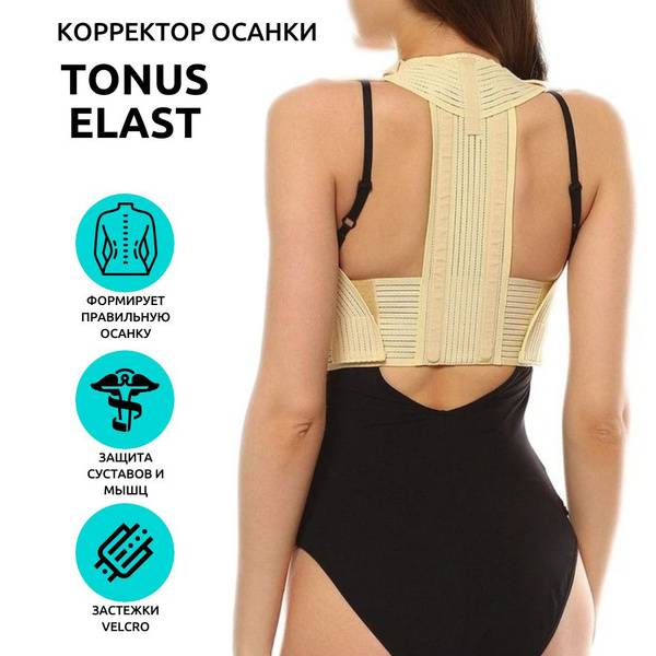 The TONUS ELAST 0108 Comfort posture corrector provides medical-grade elastic support for the upper spine, featuring rigid inserts for enhanced comfort. Designed for the prevention and correction of posture problems and spinal curvature, it helps develop and maintain physiologically correct posture.