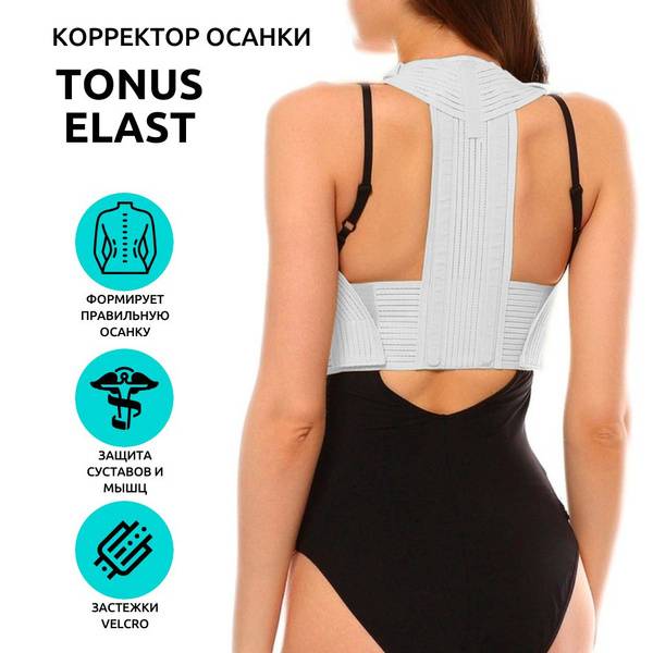 The TONUS ELAST 0108 Comfort posture corrector provides medical-grade elastic support for the upper spine, featuring rigid inserts for enhanced comfort. Designed for the prevention and correction of posture problems and spinal curvature, it helps cultivate proper posture habits.