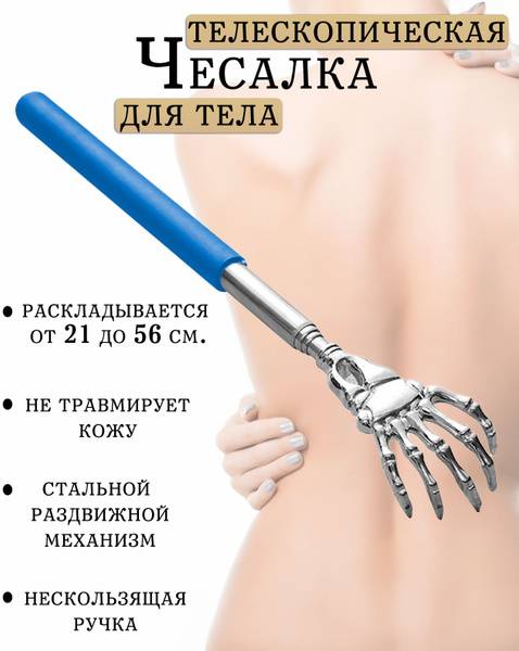 "description": "Reach any itch, anywhere on your back, with the "Skeleton" telescopic back scratcher. This durable metal scratcher extends to 58cm, providing effortless relief. More than just a scratcher, its gentle design offers a soothing massage. Compact when folded (22cm), it's perfect for travel or keeping handy at home.",