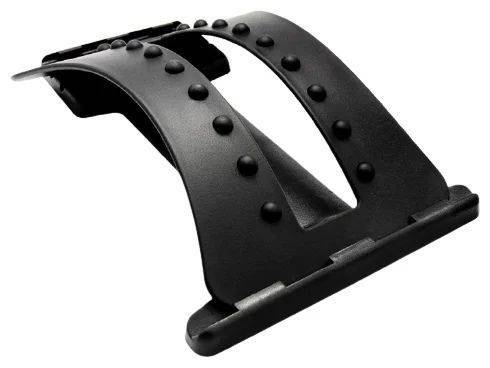 This back massage arch provides gentle spinal decompression and muscle stretching relief. Featuring four adjustable height levels, it's suitable for all ages and fitness levels. Relieve back pain and tension after long periods of sitting or strenuous activity. Its compact, two-piece design folds easily for convenient storage (38x25x17cm). Start with the lowest height and gradually increase as tolerated. Deep, slow breathing enhances relaxation. Use for 5 minutes, twice daily. Discontinue use if discomfort occurs.