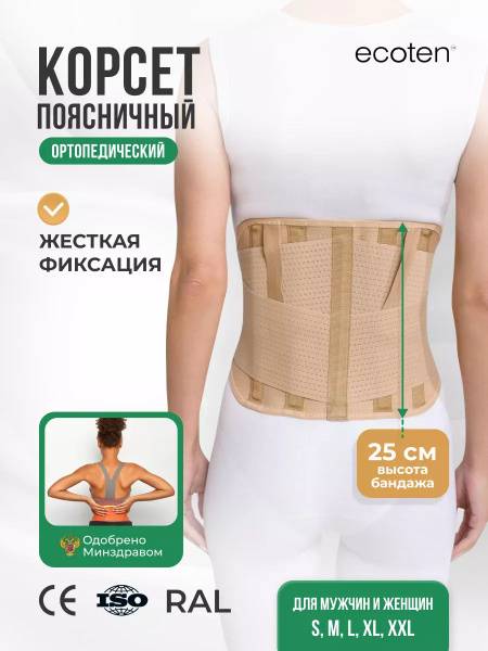 This 25cm high medical-grade lumbar sacral support brace provides moderate fixation for the lower back. Featuring 6 plastic rigid stays (4 for size S), and breathable, moisture-wicking, high-cotton content material (beige), it's ideal for: