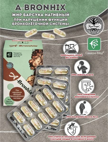 Keywords: Badger fat, A-Bronhix, respiratory health, bronchitis, cough, lung support, inflammation, natural remedy, vitamin A, vitamin E, omega-3 fatty acids, omega-6 fatty acids, hypoallergenic, pregnant women, breastfeeding, Sashera-Med, lung function, bronchial dysfunction, natural supplement, immune support, tocotrienols, weight management, antioxidant, cardiovascular health, hormonal balance, digestive health, skin health, hair health, nail health, constipation relief.